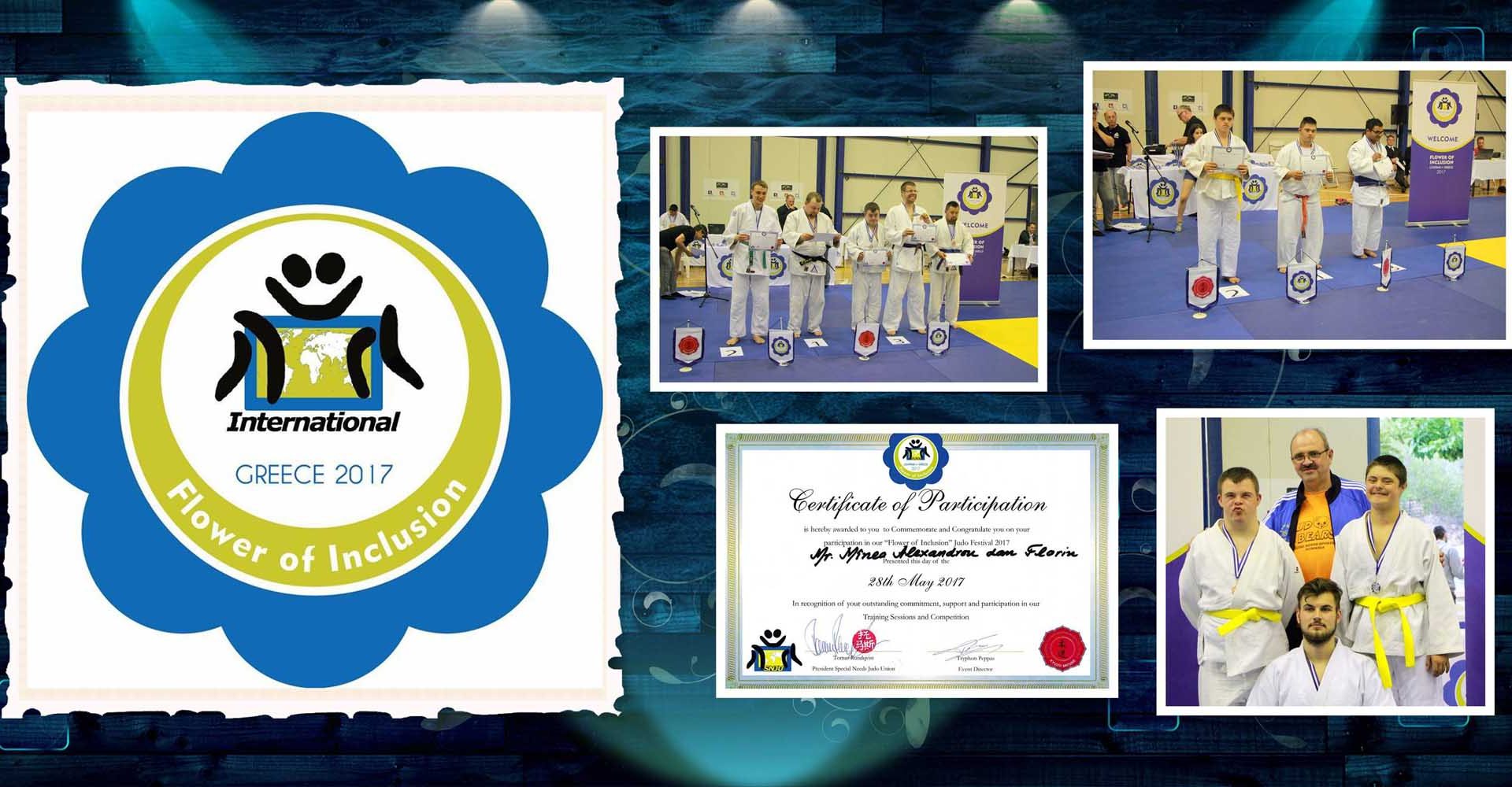 JUDOKA BEARS, echipa de judo adaptat a Asociației DOWN București a participat la un eveniment sub forma unui festival de activități cu denumirea “FLOWER of INCLUSION” ce a avut loc in Grecia , în campusul sportiv din Loutraki. Organizat de “Hellenic Judo Veterans Society – Kyuzo Mifune” și de “Special Needs Judo Union”, în perioada 24-29 mai 2017, evenimentul a reunit pe lângă competiția dedicată sportivilor cu nevoi speciale și seminarii unde antrenorii, arbitrii și cei implicați în dezvoltarea judo-ului adaptat au discutat despre regulamente, despre uniformizarea acestora, despre divisoning, moduri de antrenare, arbitraj, despre importanta kata îin judo adaptat, despre organizarea de competiții de judo adaptat și despre problemele de implementare naționala a judo adaptat ale membrilor SNJU.