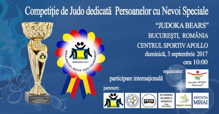 Bucuresti, 3 septembrie 2017, ora 10:00, Centrul Sportiv Apollo, Bd. Energeticienilor nr. 5 Asociatia DOWN Bucuresti impreuna cu partenerii sai: Special Needs Judo...